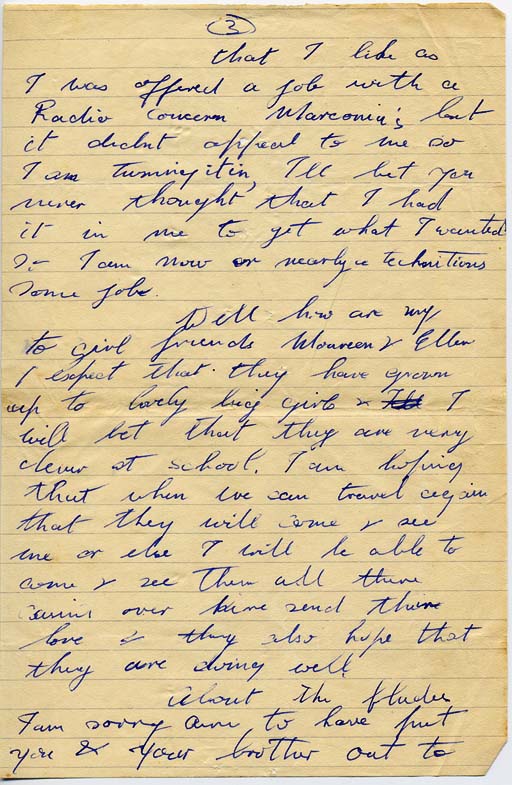 that I like as I was offered a job with a Radio concern Marconia’s but it didn’t appeal to me so I am turning it in, Ill bet you never thought that I had it in me to get what I wanted so? I am now or nearly a technitions? some job.